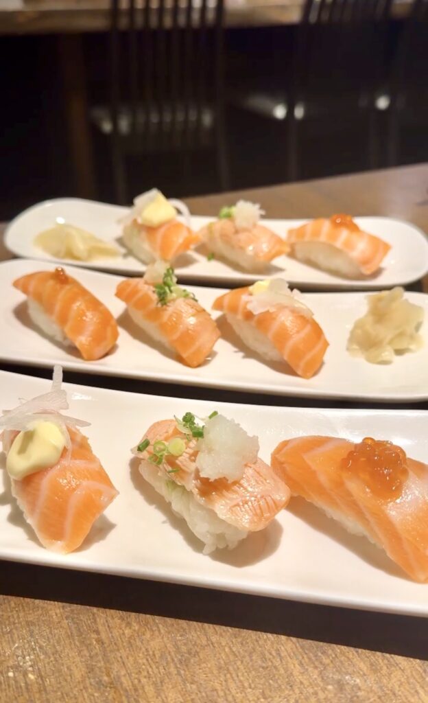 サーモンの旨味を3つの味わいで楽しむ至福の一皿。 ◆トロけるサーモン三種盛り ・トロけるサーモンの握り ・炙りサーモン 大根おろし添え ・いくら載せサーモン 一貫一貫、異なる食感と味わいを お楽しみいただける特別な 食べ比べスタイル。 職人が厳選目... -