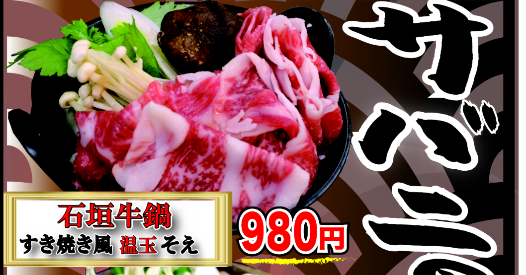 - 石垣牛鍋 すき焼き風 温玉そえ 980円